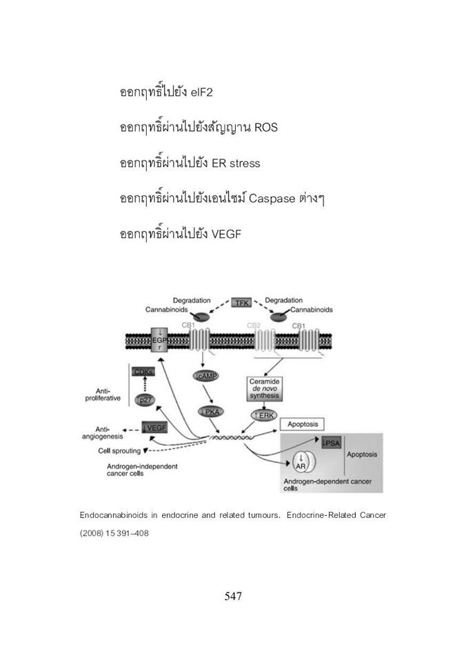 นอกจากนั้นยังเกี่ยวข้องกับสารอื่นๆ ตามภาพประกอบ ที่ยกมาจากหนังสือ 82 กระบวนท่า กัญชา กัญชง ฆ่ามะเร็ง หน้าที่ 547