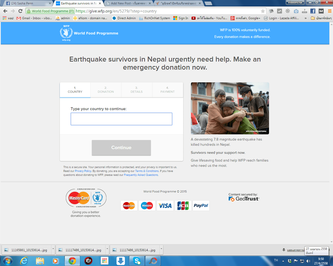 หรือที่ Earthquake survivors in Nepal urgently need help. Make an emergency donation now.