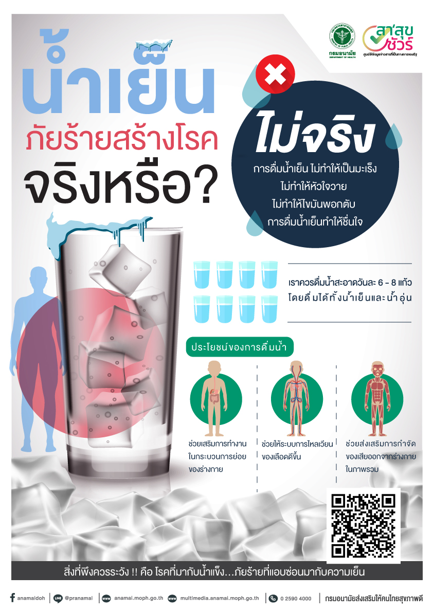 ไม่จริง การดื่มน้ำเย็น ไม่ทําให้เป็นมะเร็ง ไม่ทําให้หัวใจวาย ไม่ทําให้ไขมันพอกตับ